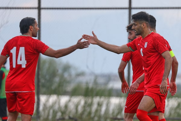 Iran's Mohammad Mohebi, right, celebrates with teammates after scoring his side's third goal during a friendly match against Costa Rica in Antalya, southern Turkey on Tuesday.Riza Ozel/The Associated Press