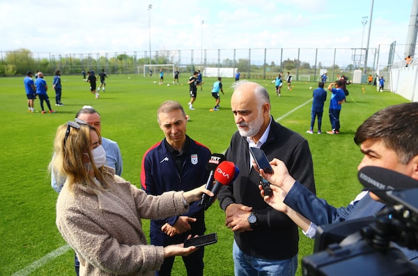 First vice president of the Islamic Republic of Iran Football Federation Mehdi Mohammad Nabi speaks to the media in Turkey this week.Kaan Soyturk/Reuters