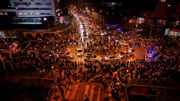 A drone view of Bosnia and Herzegovina fans celebrating qualifying for the FIFA World Cup outside the stadium on Tuesday.Dado Ruvic/Reuters