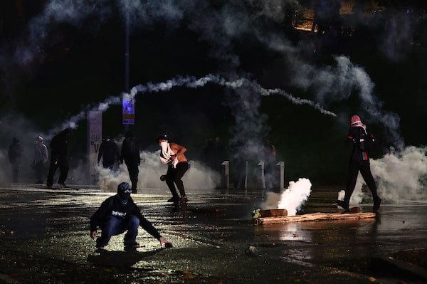 Tear gas is used as police clash with pro-Palestine protestors during a march against the Israeli football team ahead of the Italy v Israel match on Tuesday.Yara Nardi/Reuters