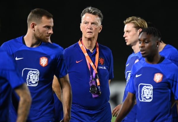 A few days later, Van Gaal puckered up. He was seated next to Denzel Dumfries, who scored one goal and assisted on two others in the 3-1 win over the United States that put the Dutch in the quarter-finals. A reporter from Aruba asked Van Gaal how proud he was of the defender, who has an Aruban father.