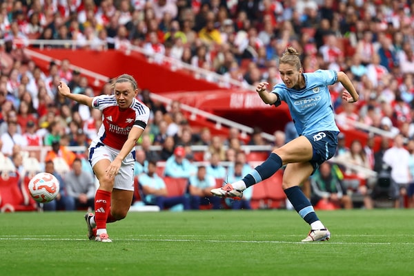 Manchester City's Vivianne Miedema shoots at the goal during a match against Arsenal in London on Sept. 22.Andrew Boyers/Reuters