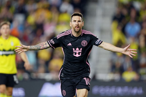 Inter Miami CF forward Lionel Messi celebrates after scoring a goal against the Columbus Crew during the first half at Lower.com Field in Columbus, Ohio, on Oct. 2.Joseph Maiorana/Reuters