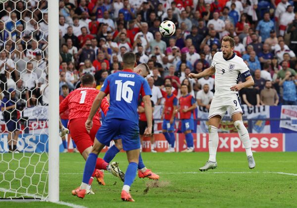 Harry Kane scores England's second goal in extra time against Slovakia in Gelsenkirchen, Germany, on June 30.Lee Smith/Reuters