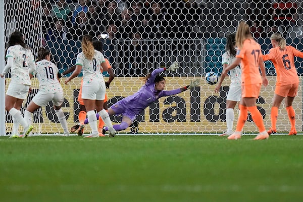 Portugal's Ines Pereira fails to save a goal by Netherlands' Stefanie Van der Gragt during the Women's World Cup Group E soccer match between the Netherlands and Portugal in Dunedin, New Zealand, on July 23.Alessandra Tarantino/The Associated Press