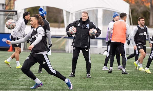 CF Montreal's new head coach Philippe Eullaffroy gives instruction during practice in Montreal on Tuesday.Christinne Muschi/The Canadian Press