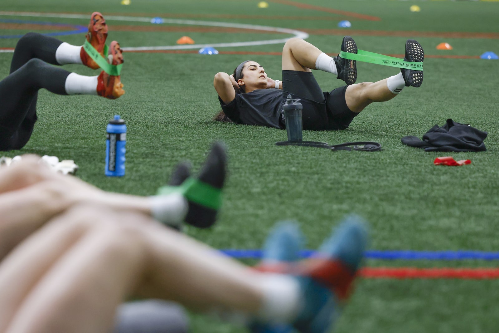 Tanya Boychuk, an Edmonton native who has appeared for Canada’s women’s senior and U20 sides, repatriates after playing pro in Iceland and Sweden. Montreal’s facilities have impressed Ms. Boychuk: “Our facility is only for us, we’re not sharing with a men’s team or anyone else – our own weight room, locker room, kitchen, recovery. I just played in Sweden, in the top division, and we were fighting over this one purple rubber band for warm-ups there. Here we have stacks and stacks.”