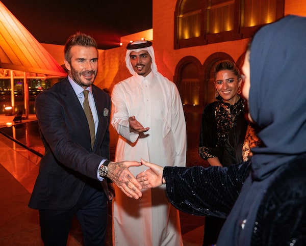 David Beckham talks with guests in Doha last year before a dinner at the Museum of Islamic Arts.QM via Balkis Press/ABACA