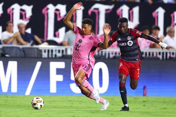 Ian Fray of Inter Miami and Derrick Etienne of Toronto FC compete for the ball during the second half at Chase Stadium. Inter Miami won 3-1 on July 17, 2024, in Fort Lauderdale.Megan Briggs/Getty Images