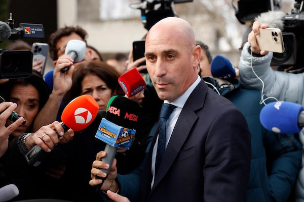 Former Spanish soccer chief Luis Rubiales leaves the court in Madrid, on Feb. 11.Juan Medina/Reuters