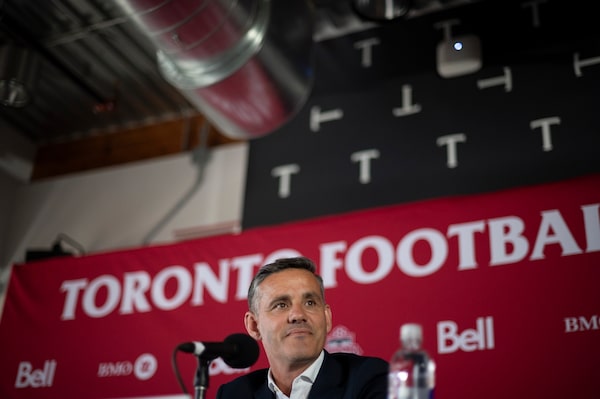 Toronto FC head coach John Herdman attends a news conference at the BMO Training Field, in Toronto, on Aug. 29, 2023.Tijana Martin/The Canadian Press
