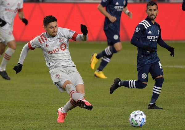 Toronto FC midfielder Marky Delgado passes the ball during a game against New York City FC at BMO Field in Toronto on March 7, 2020.Dan Hamilton/USA TODAY Sports via Reuters