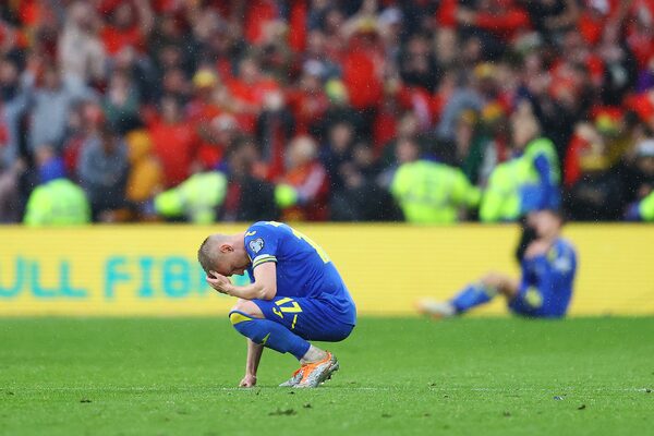 Oleksandr Zinchenko of Ukraine looks dejected following their sides defeat in the FIFA World Cup Qualifier between Wales and Ukraine at Cardiff City Stadium in Cardiff, Wales, on June 05.MICHAEL STEELE/Getty Images