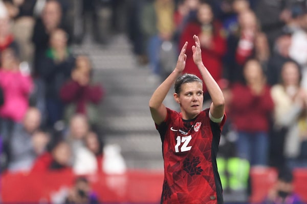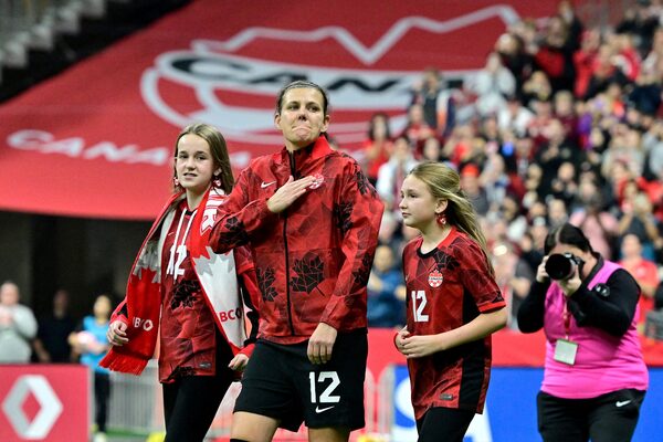 The talismanic Sinclair, a role model on and off the field, has been the face of Canadian soccer for years – an unassuming star with no taste for the spotlight. But she was front and centre Tuesday, tearing up in a pre-game ceremony that also honoured Schmidt and goalkeeper Erin McLeod.