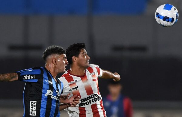 Liverpool's Gaston Martinera, left, and River Plate's Gonzalo Castro vie for the ball during their Sudamericana Cup first round second leg all-Uruguayan football match at the Centenario stadium in Montevideo, on March 16, 2022. Liverpool won 2-0.PABLO PORCIUNCULA/AFP/Getty Images