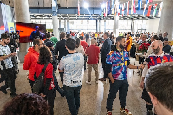 Soccer fans gather at the St. Lawrence Market North Building for a World Cup draw party organized by the City of Toronto.EDUARDO LIMA/The Globe and Mail