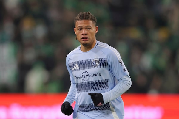 Sporting Kansas City defender Zorhan Bassong during a game against Austin FC, in Austin, Tex., on Feb. 22.Stephen Spillman/The Associated Press