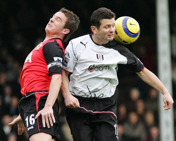 Fulham's Canadian forward Tomasz Radzinski (right), goes for the ball during a soccer match at Craven Cottage, London, Saturday, Nov. 27, 2004.SANG TAN/The Associated Press