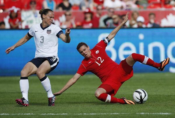 The Canadian and American women's soccer teams met in an exhibition match at Toronto's BMO Field on Sunday for the first time since Canada nearly pulled off one of the greatest upsets in Olympic soccer history last summer. Team Canada's goal in the friendly was to stifle the hot two American scorers – Morgan and Abby Wambach. That worked for about two thirds of the game, and Canada lost steam. Morgan, the very player who had scored the winning goal to top Canada at the Olympics, finally broke loose and scored two goals. Canadian-born U.S. player Sydney Leroux added another, and popped her American jersey at fans who booed her, and the U.S triumphed 3-0.