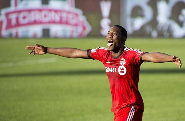 Toronto FC defender Doneil Henry reacts at game end after scoring the game winning goal against the Columbus Crew during second half MLS soccer action in Toronto on Saturday May 31, 2014.Nathan Denette/The Canadian Press
