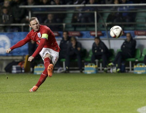 England's Wayne Rooney takes a shot during their Euro 2016 qualifying soccer match against Estonia at the A. Le Coq Arena in Tallinn October 12, 2014.INTS KALNINS/Reuters