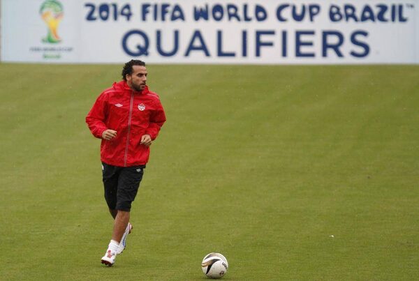 Canada's national soccer team member Dwayne De Rosario controls the ball during a training session at the Rommel Fernandez stadium in Panama City September 10, 2012.CARLOS JASSO/Reuters