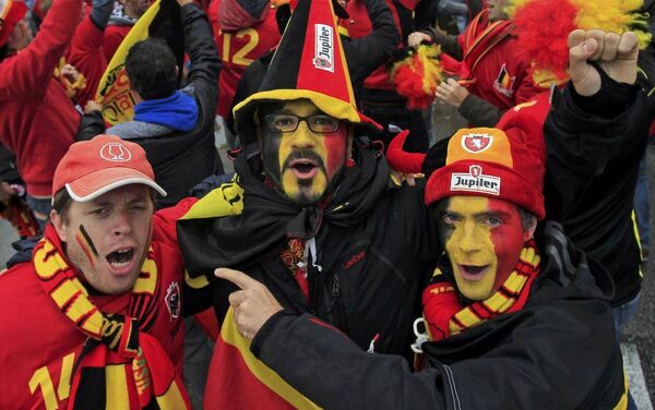 Belgian supporters celebrate before the 2014 World Cup qualifying soccer match against Croatia outside Maksimir stadium in Zagreb October 11, 2013.ANTONIO BRONIC/Reuters