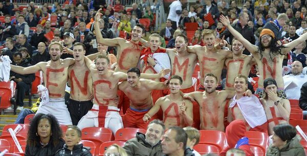 Fans cheer ahead of England 2014 World Cup qualifying soccer match against Montenegro at Wembley Stadium in London, October 11, 2013.TOBY MELVILLE/Reuters