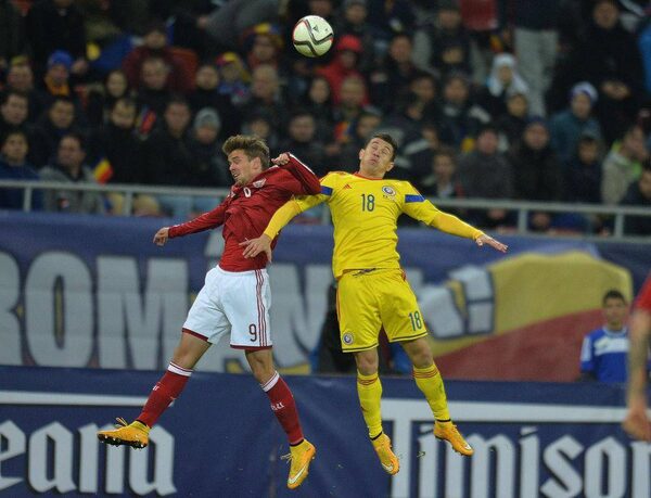 Andrei Prepelita, right, of Romania and Lucas Andersen of Denmark vie for the ball during a friendly football match Romania vs Denmark at National Arena in Bucharest on November 18, 2014.DANIEL MIHAILESCU/AFP / Getty Images