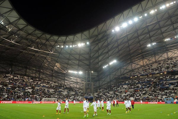 France football team's players warm up before the friendly football match France vs Sweden on November 18, 2014 at the Velodrome stadium in Marseille, southern France.BORIS HORVAT/AFP / Getty Images