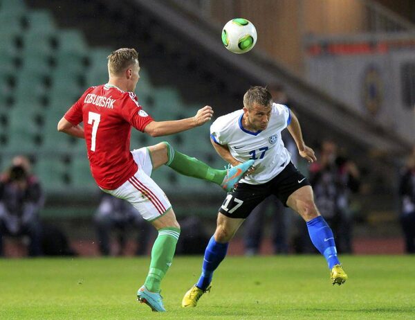 Balazs Dzsudzsak of Hungary, left, is challenged by Enar Jaager of Estonia during their 2014 World Cup 2014 qualifying soccer match in Budapest September 10, 2013.BERNADETT SZABO/Reuters