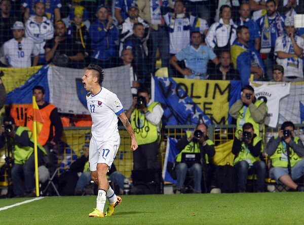 Slovakia's Marek Hamsik celebrates after scoring a goal against Bosnia during their 2014 World Cup qualifying soccer match in Zilina September 10, 2013.RADOVAN STOKLASA/Reuters
