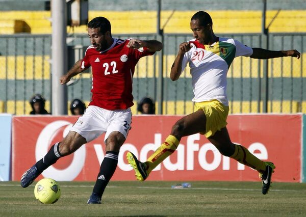 Egypt's Mohamed Aboutrika, left, fights for the ball with Guinea's Habib Balde during their 2014 World Cup qualifying soccer match at El-Gouna stadium in Hurghada.AMR ABDALLAH DALSH/Reuters