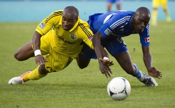 Montreal Impact's Hassoun Camara battles for possession of the ball during first half MLS action in Montreal, Sunday, July 8, 2012.Paul Chiasson/The Canadian Press