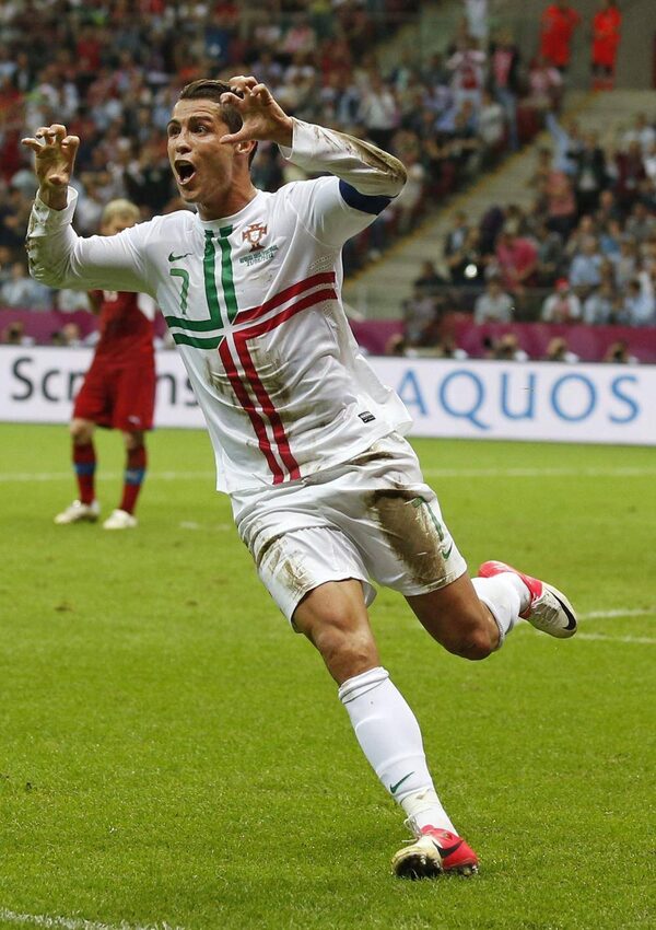 Portugal's Cristiano Ronaldo celebrates after scoring during the Euro 2012 soccer championship quarter-final match between Czech Republic and Portugal in Warsaw, Poland, Thursday, June 21, 2012.Armando Franca/The Associated Press