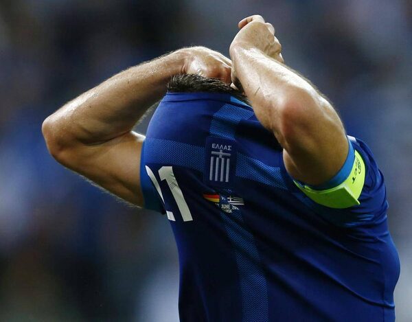 Greece's Kostas Katsouranis takes off his jersey at the end of their Euro 2012 quarter-final soccer match against Germany at the PGE Arena in Gdansk, June 22, 2012. Germany won 4-2 REUTERS/Kai PfaffenbachKAI PFAFFENBACH/Reuters