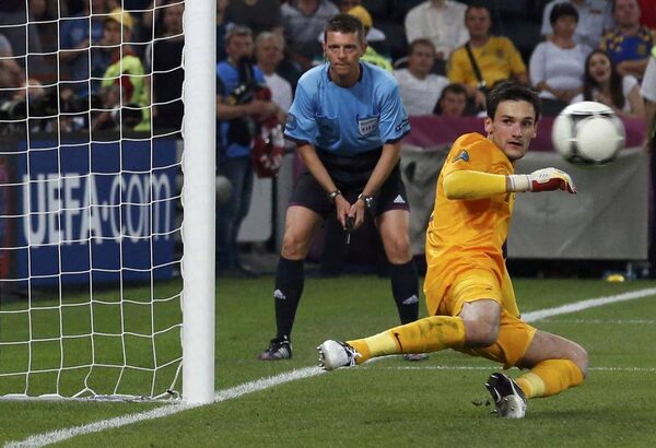France's goalkeeper Hugo Lloris fails to save a penalty from Spain's Xabi Alonso (not pictured) during their Euro 2012 quarter-final soccer match at Donbass Arena in Donetsk, June 23, 2012. Spain won 2-0.ALESSANDRO BIANCHI/Reuters