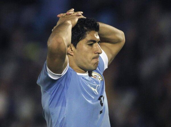 Uruguay's Luis Suarez reacts during their 2014 World Cup qualifying soccer match against Ecuador in Montevideo September 11, 2012.ANDRES STAPFF/Reuters
