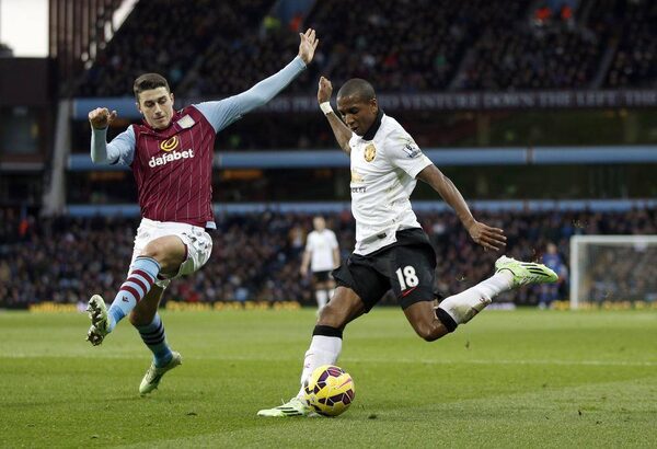 Aston Villa's English defender Matthew Lowton (L) challenges Manchester United's English midfielder Ashley Young during the English Premier League football match between Aston Villa and Manchester United at Villa Park in Birmingham, central England, on December 20, 2014.ADRIAN DENNIS/AFP / Getty Images