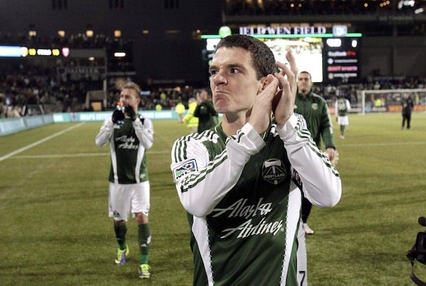 Portland Timbers midfielder Will Johnson applauds fans as he walks off the field after a second game of the Western Conference finals in the MLS Cup soccer playoffs against Real Salt Lake, Sunday, Nov. 24, 2013, in Portland, Ore. Johnson has been chosen Canada's male soccer player of the year.Don Ryan/The Associated Press