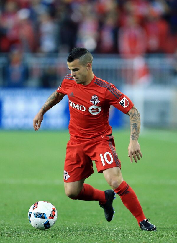 Sebastian Giovinco of Toronto FC dribbles the ball during an MLS soccer game against FC Dallas on May 7.Vaughn Ridley/Getty Images