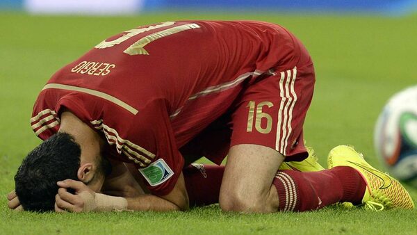Spain's Sergio Busquets reacts after missing a chance during the group B World Cup soccer match between Spain and Chile at the 2014 World CupThe Associated Press