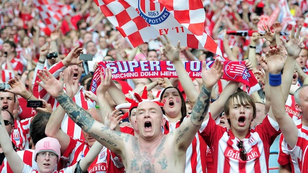 Stoke City fans celebrate their team winning at the final whistle during the FA Cup sponsored by E.ON semi final match between Bolton Wanderers and Stoke City at Wembley Stadium on April 17, 2011 in London, England.Jamie McDonald
