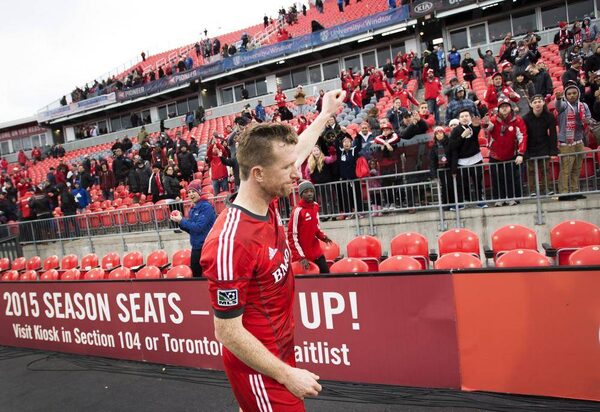 Toronto FC captain Steven Caldwell acknowledges the crowd following the club's final home game last weekDarren Calabrese/The Canadian Press