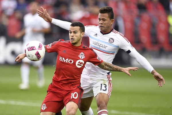 TFC forward Sebastian Giovinco evades the Chicago Fire's Rodrigo Ramos during a game in Toronto on Oct. 23, 2016.Frank Gunn/The Canadian Press