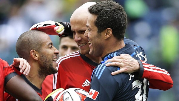Toronto FC midfielder Michael Bradley (centre) was voted into the Major League Soccer all-star team on Wednesday, July 16, 2014.Ted S. Warren/The Associated Press