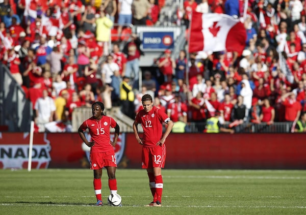 The Canadian national women’s team roster includes captain Christine Sinclair, right, and fellow World Cup veterans.MARK BLINCH/Reuters