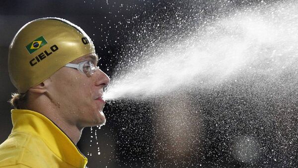 Brazil's Cesar Cielo blows out a mouthful of water before competing in the men's 100m freestyle final at the Pan American Games in Guadalajara.JORGE SILVA/Reuters