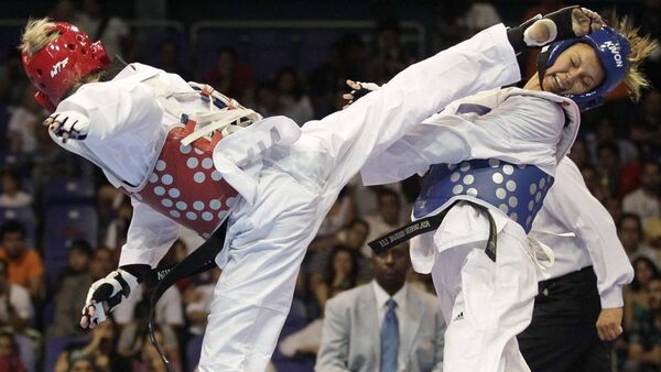 Gonda Ivett of Canada (Red) fights Lisbeth Diez Canseco of Peru during the Women's Under 49kg final taekwondo competition at the Pan American Games in Guadalajara.HENRY ROMERO/Reuters