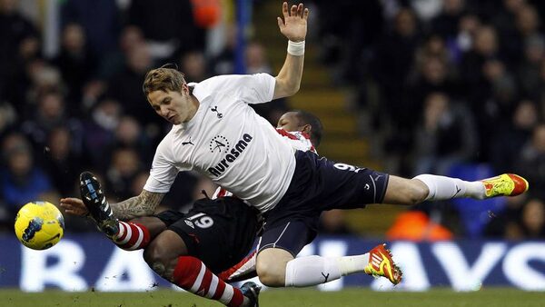 Tottenham Hotspur's Roman Pavlyuchenko, right, challenges Sunderland's Titus Bramble during their English Premier League soccer match at White Hart Lane, north London.STEFAN WERMUTH/Reuters